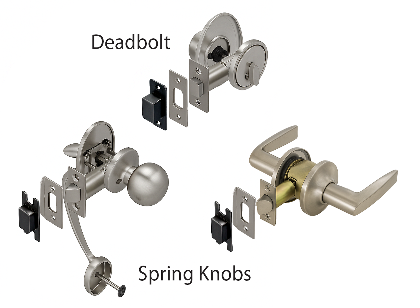 Spring knob locks come in a range of types and styles, allowing homeowners to balance convenience, security, and design: