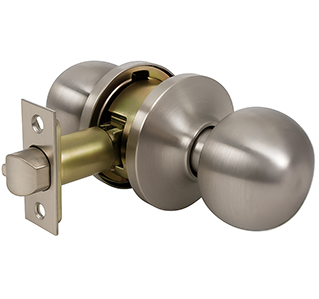 A spring knob handle is a common type of door handle that uses an internal spring and latch. When you turn the knob, the latch pulls back to open the door and then automatically springs back into place when released. These handles are often used on entry doors along with a deadbolt for extra security. Available in locking or non-locking styles.