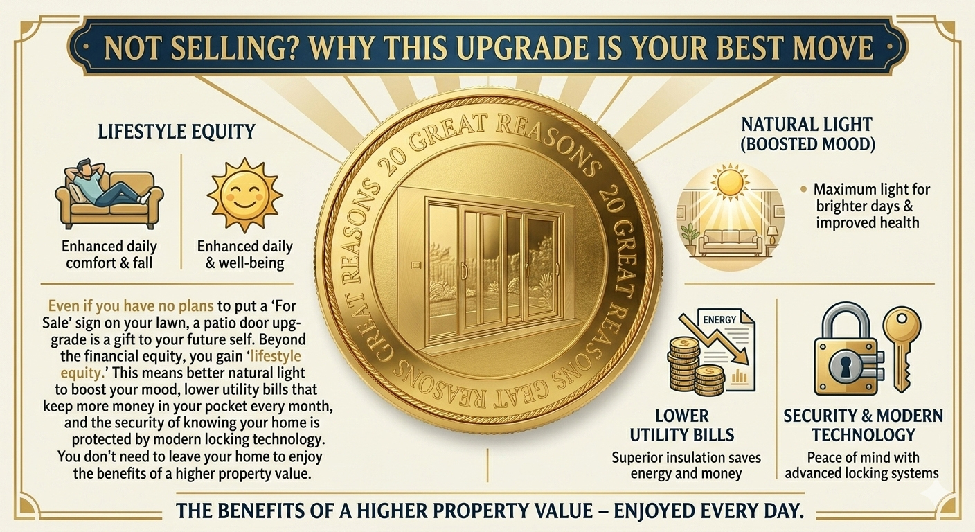 Even if you have no plans to put a 'For Sale' sign on your lawn, a patio door upgrade is a gift to your future self. Beyond the financial equity, you gain 'lifestyle equity.' This means better natural light to boost your mood, lower utility bills that keep more money in your pocket every month, and the security of knowing your home is protected by modern locking technology. You don't need to leave your home to enjoy the benefits of a higher property value.